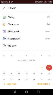 Any tasks that you don't actually get round to on that day will show up as overdue the next day and can be rescheduled to that day or a completely different one by just clicking on Reschedule on the top right. There is one thing that I'm not keen on with this bit of software and that's that you cannot add tasks to you're Today screen manually that you want to get done before the due date you've actually given them. This was something I was able to do with Microsoft To-do and actually really liked.